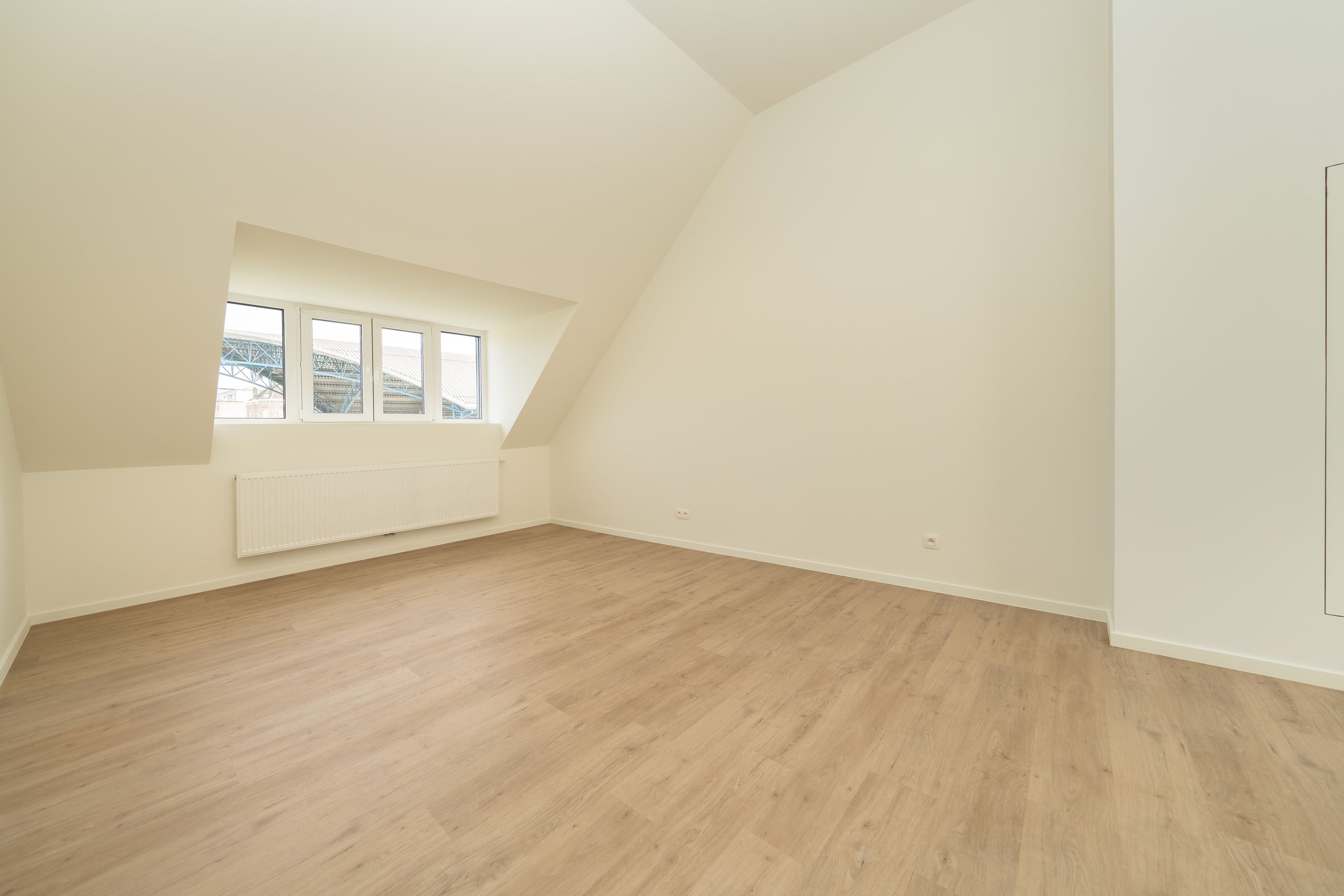 ruime slaapkamer 2 (30m²) mogelijk op te splitsen in 2 kamers of te voorzien van een hoogslaper dankzij de hoge plafonds, ingebouwde kasten waarin de technieken zijn ondergebracht (ventilatiesysteem & centrale verwarming)