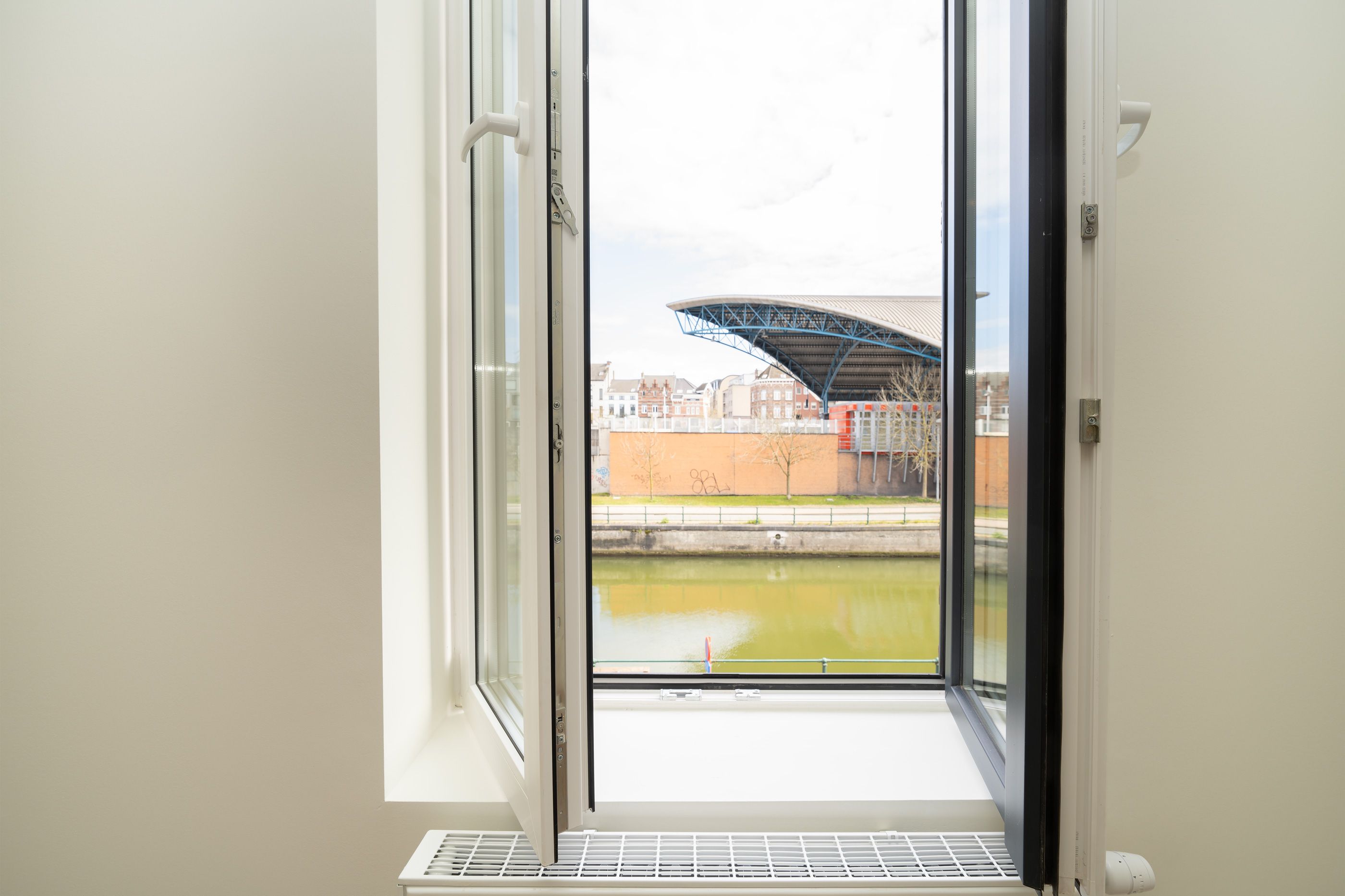 Dit integraal vernieuwd en uitgebreid woonhuis, is gelegen in het centrum van de stad, vlakbij het station en heeft aan de voorkant zicht op het Kanaal en aan de achterzijde op de Zenne.
